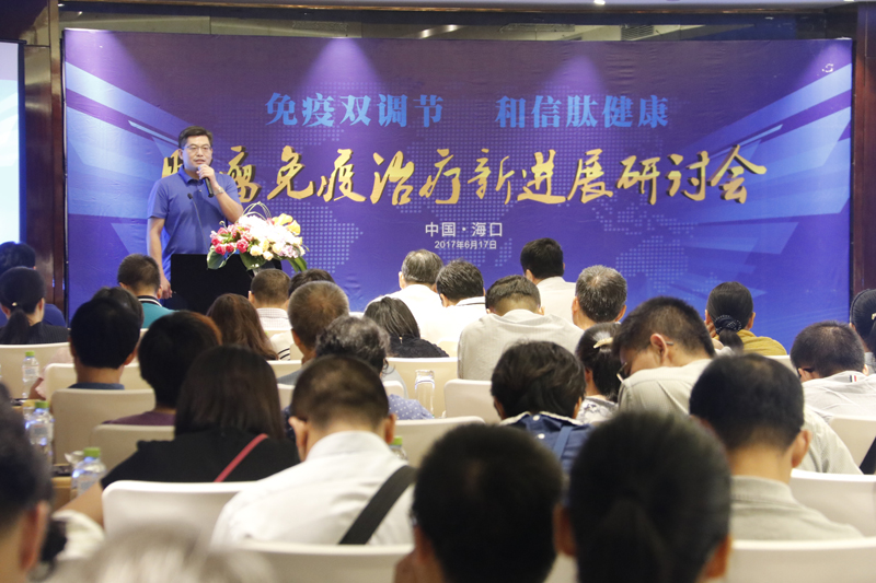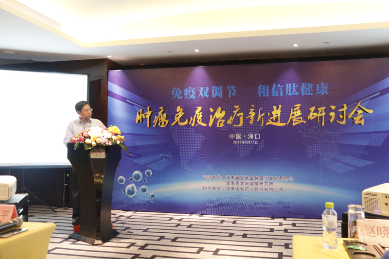 2017年6月17日,在有著(zhù)迷人的碧海藍天,旖旎的海底世界,樸實(shí)的風(fēng)土人情的椰城,腫瘤免疫治療新進(jìn)展研討會(huì )在??谙栴D酒店拉開(kāi)帷幕。本次會(huì )議由海南省醫學(xué)會(huì )腫瘤學(xué)專(zhuān)業(yè)委員會(huì )、海南省醫學(xué)院腫瘤研究所主辦,海南中和藥業(yè)股份有限公司協(xié)辦。海南省醫學(xué)會(huì )腫瘤學(xué)專(zhuān)業(yè)委員會(huì )主任委員夏立平教授擔任大會(huì )主席,近200名腫瘤免疫方面專(zhuān)家、醫生參與此次盛會(huì )。