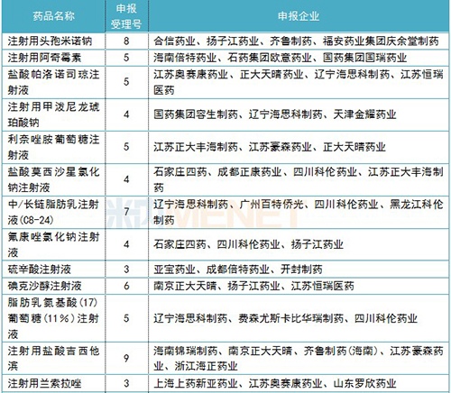 正在審評的注射劑一致性評價(jià)補充申請情況(3家及以上)