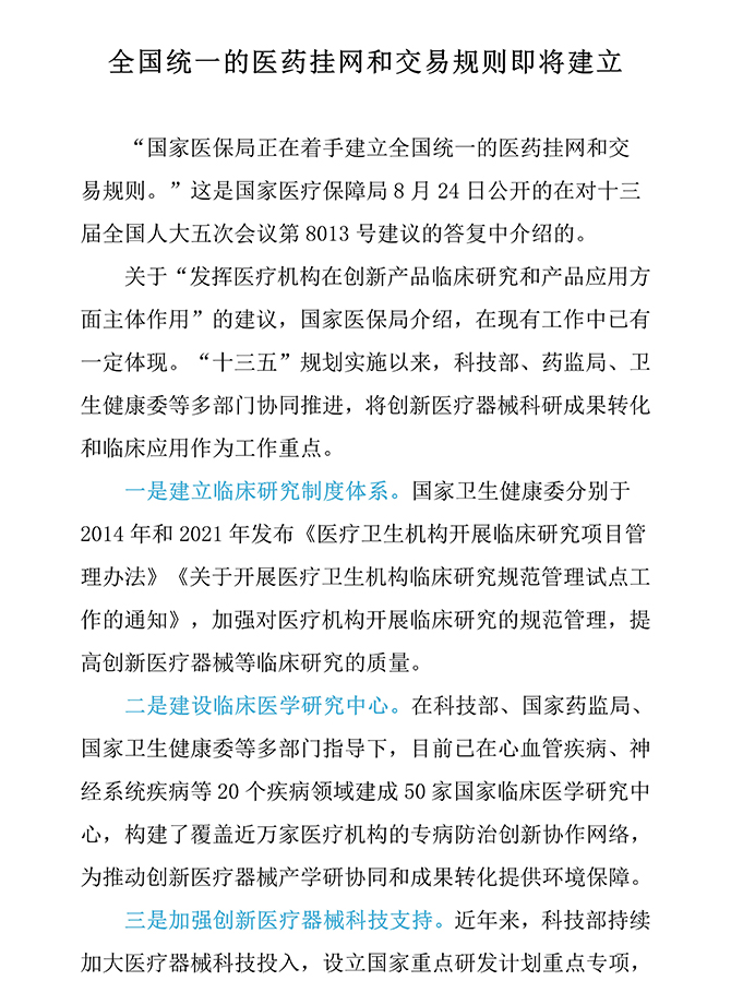 全國統一的醫藥掛網(wǎng)和交易規則即將建立