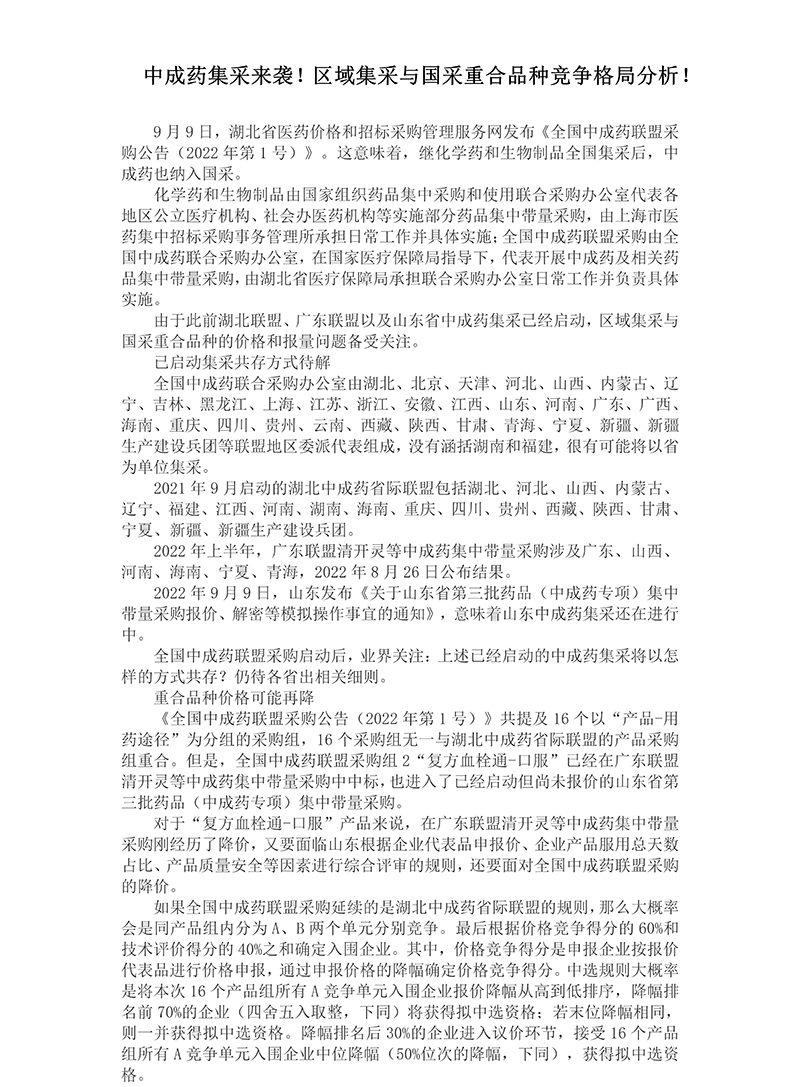 中成藥集采來(lái)襲!區域集采與國采重合品種競爭格局分析