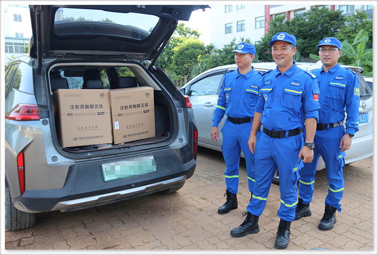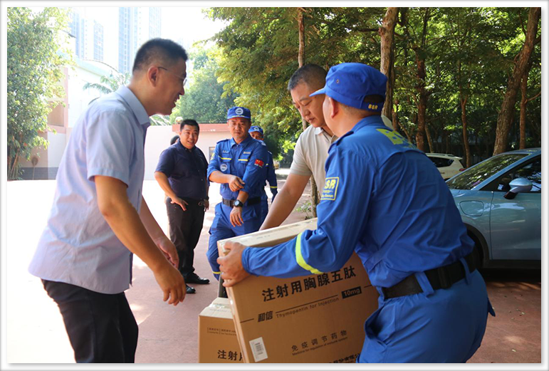 8月9日上午,為了助力公益救援事業(yè),守護藍天救援團隊的健康,海南中和藥業(yè)股份有限公司向??谑兴{天救援隊捐贈一批免疫調節藥物和信-注射用胸腺五肽,并在公司舉行了捐贈儀式。