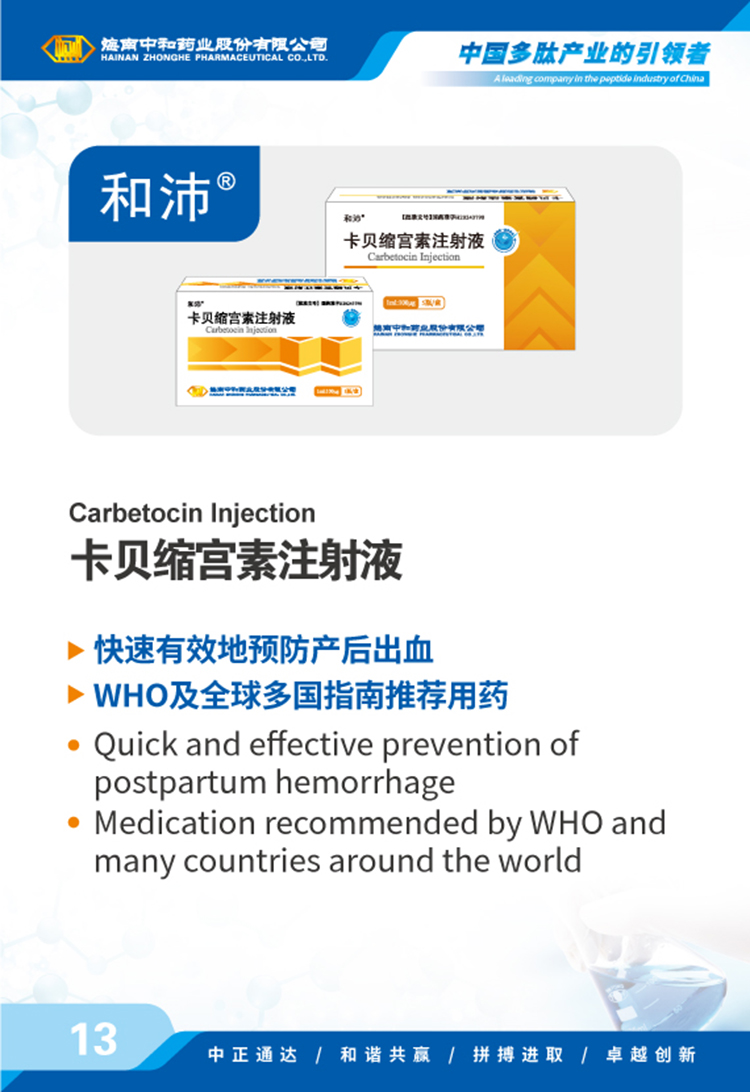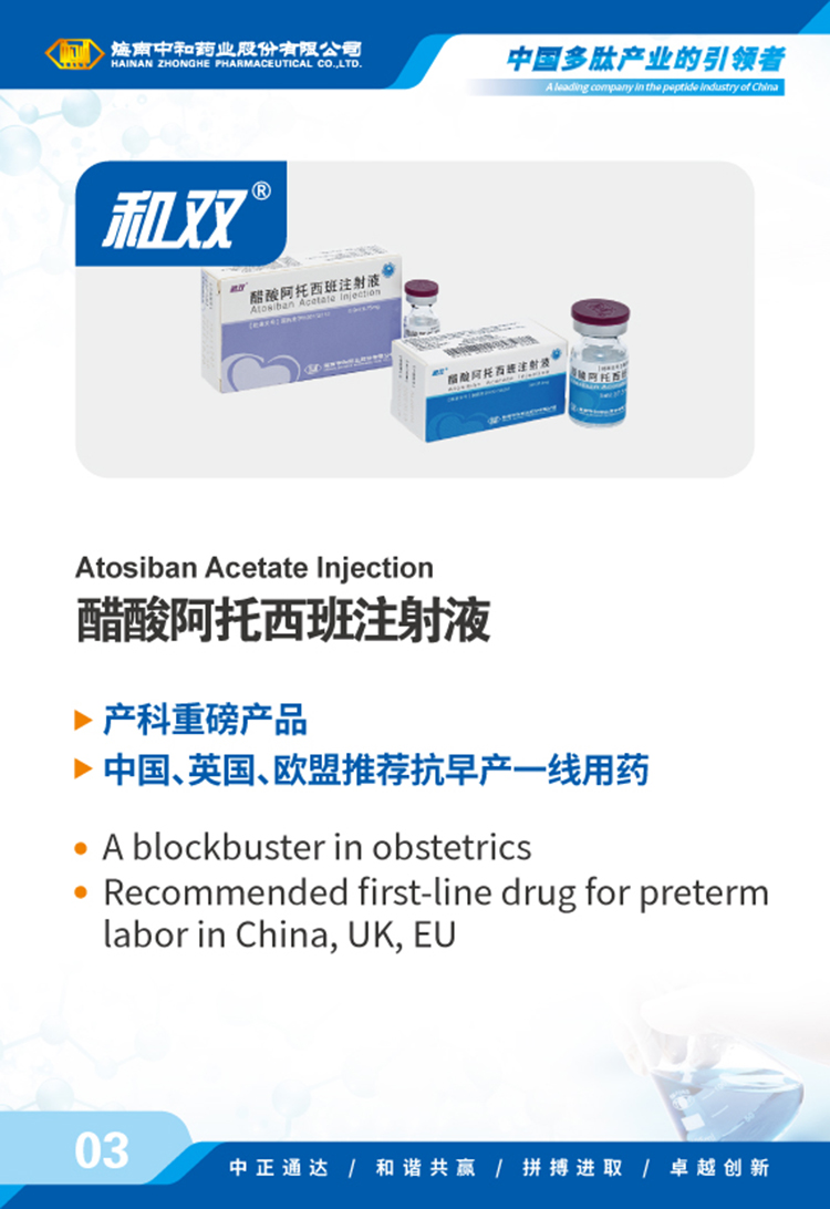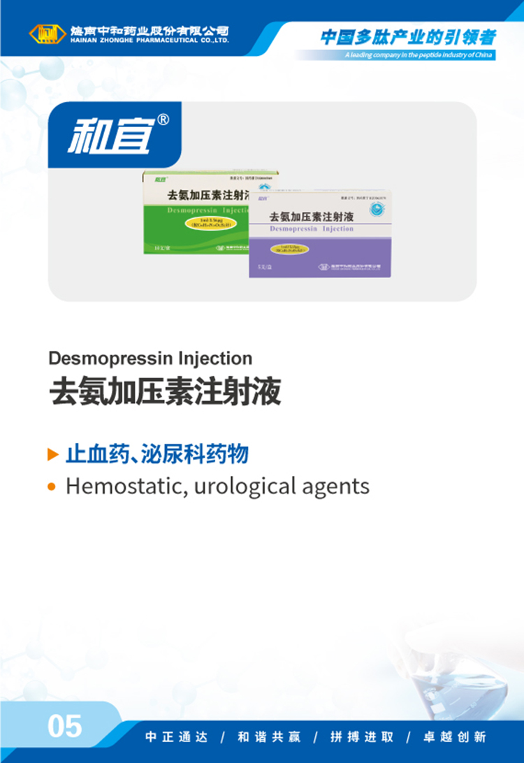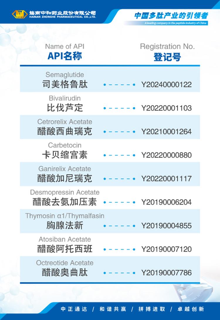 海南中和藥業(yè)股份有限公司(以下簡(jiǎn)稱(chēng)中和藥業(yè))成立于1995年4月17日,為我國最早專(zhuān)門(mén)從事化學(xué)合成多肽藥物的研究和實(shí)現產(chǎn)業(yè)化的國家高新技術(shù)企業(yè),中國國內第一個(gè)化學(xué)合成多肽類(lèi)新藥“注射用胸腺五肽”就由中和藥業(yè)自行研發(fā)上市,填補了中國多肽產(chǎn)業(yè)的空白。歷經(jīng)近30年的發(fā)展,公司產(chǎn)品已涵蓋免疫、腫瘤、肝病、心血管、內分泌、婦科圍產(chǎn)等多個(gè)治療領(lǐng)域,并擁有多肽原料藥、化學(xué)原料藥及小容量注射劑(包括預灌封、卡式瓶)、凍干粉針劑、片劑、膠囊劑等多種劑型的生產(chǎn)能力,產(chǎn)品已成功出口韓國、烏茲別克斯坦等多個(gè)國家和地區。