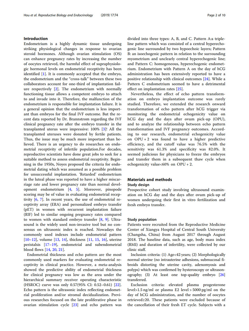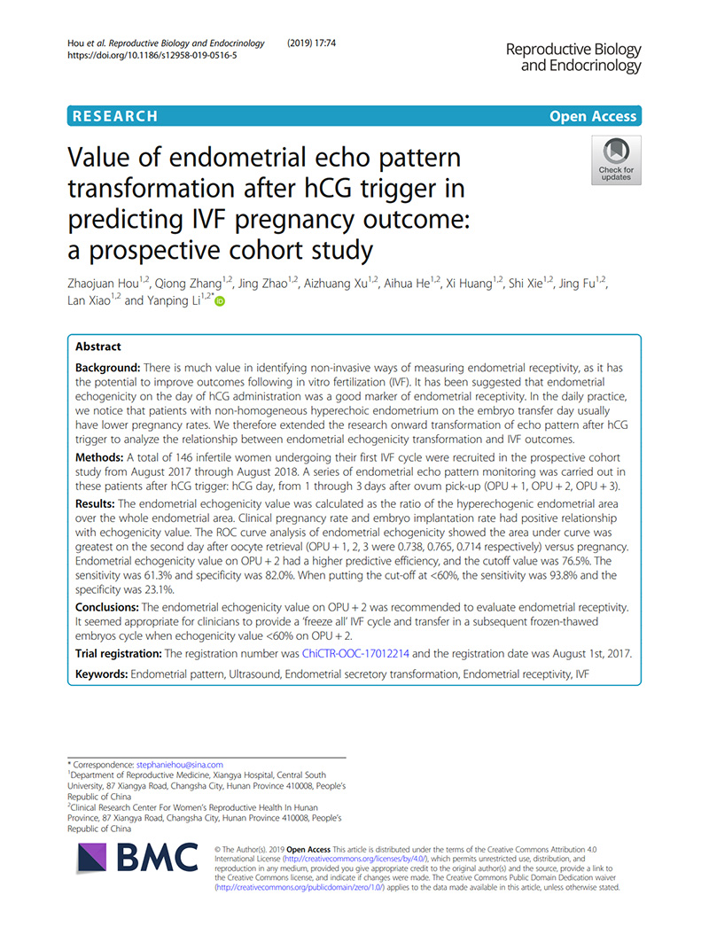 hCG觸發(fā)的子宮內膜回聲改變對預測IVF妊娠結局的價(jià)值:前瞻性隊列研究